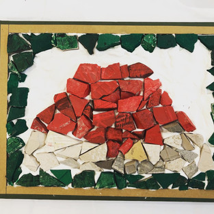 お子さんの発想力はとどまる事を知らずハンマーで叩いて割ったタイルの端材に色づけしたパーツを用意しています。